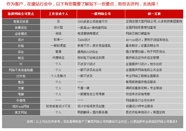目前的網絡公司多如牛毛,大公司、小公司、個人工作室、或者是個人,都在進行著傳統建站業務,作為企事業單位如果有這種需求,這時就要擦亮眼睛了,不同的公司,自然他們的報價會有所不同,那么究竟怎樣從茫茫大海中找到合適的網絡公司呢?
