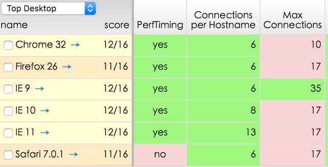 嗯,為何要這么做呢,目的是充分運(yùn)用現(xiàn)代瀏覽器的多線程并發(fā)下載才能。 由于瀏覽器的約束,每個(gè)瀏覽器,答應(yīng)對(duì)每個(gè)域名的銜接數(shù)通常是有上限的,附圖一枚: